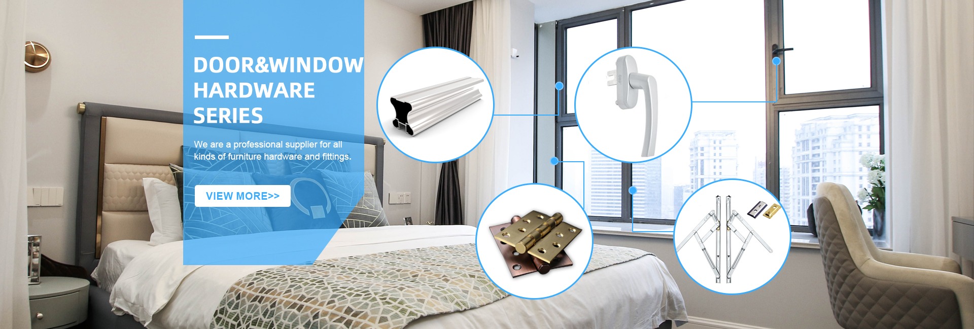 Produk utama: Engsel furnitur, geser laci, pegangan Kabinet, kaki Sofa, roda furnitur